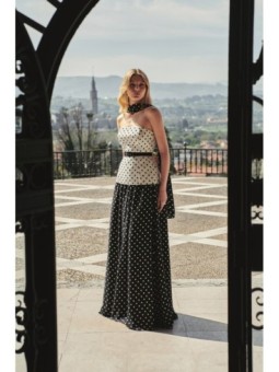 Ideal para deslumbrar como invitada a una boda de verano combinado con nuestra falda larga en crepe negro fino con lunares blancos en contraste. También es perfecto para graduación o fiesta especial.