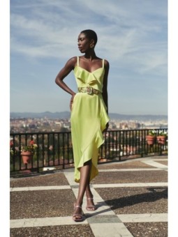 Precioso vestido midi confeccionado en satén de excelente calidad, en color lima.